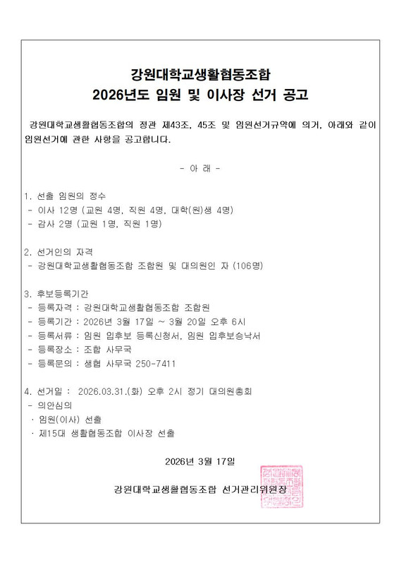 TEL 033-250-7411 | FAX 033-252-8473 | EMAIL knucoop@kangwon.ac.kr